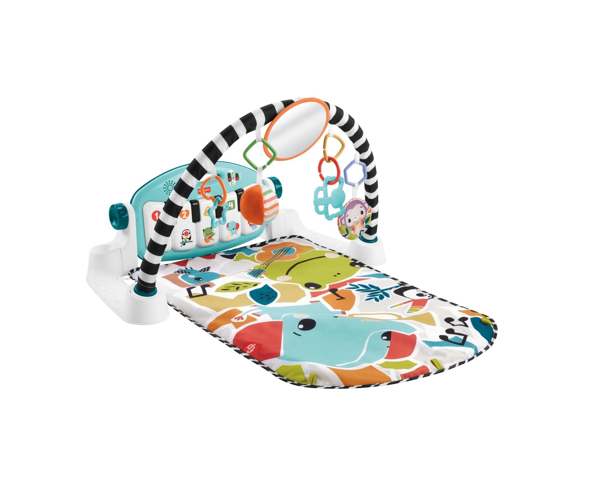 Get your little one moving, grooving (and learning) with the Glow and Grow™ Kick & Play™ Piano Gym from Fisher-Price®. This soft baby activity mat features a repositionable high contrast toy arch with 10 linkable toys. The removeable piano with 5 light up keys features a multi-colored light show and has 4 musical settings that grow with baby from newborn to toddler. With 3 Smart Stages™ learning levels, and a bonus freestyle mode with real piano notes, you can keep things fresh and fun as your little virtuoso goes from lay and play and tummy time to sitting up and making music!