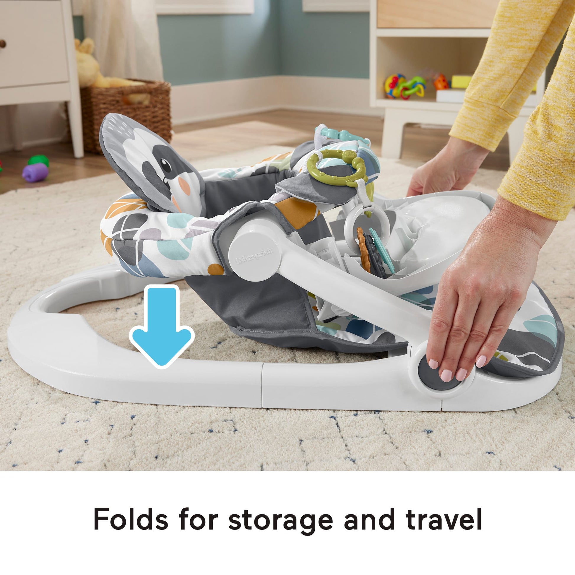 The Fisher-Price Sit-Me-Up Floor Seat with Tray will give your little one a whole new point of view! The soft seat helps support unsteady sitters so they can sit up, play, and even grab a snack on the removable, dishwasher safe tray. The seat pad is machine washable and features an adorable sloth headrest. This portable baby chair comes with a linkable clacker and teether to engage your baby as they take it all in. Max. weight 25 lb (11,3 kg). Use only with a child who is able to hold their head up unassisted and who is not able to climb out or walk.